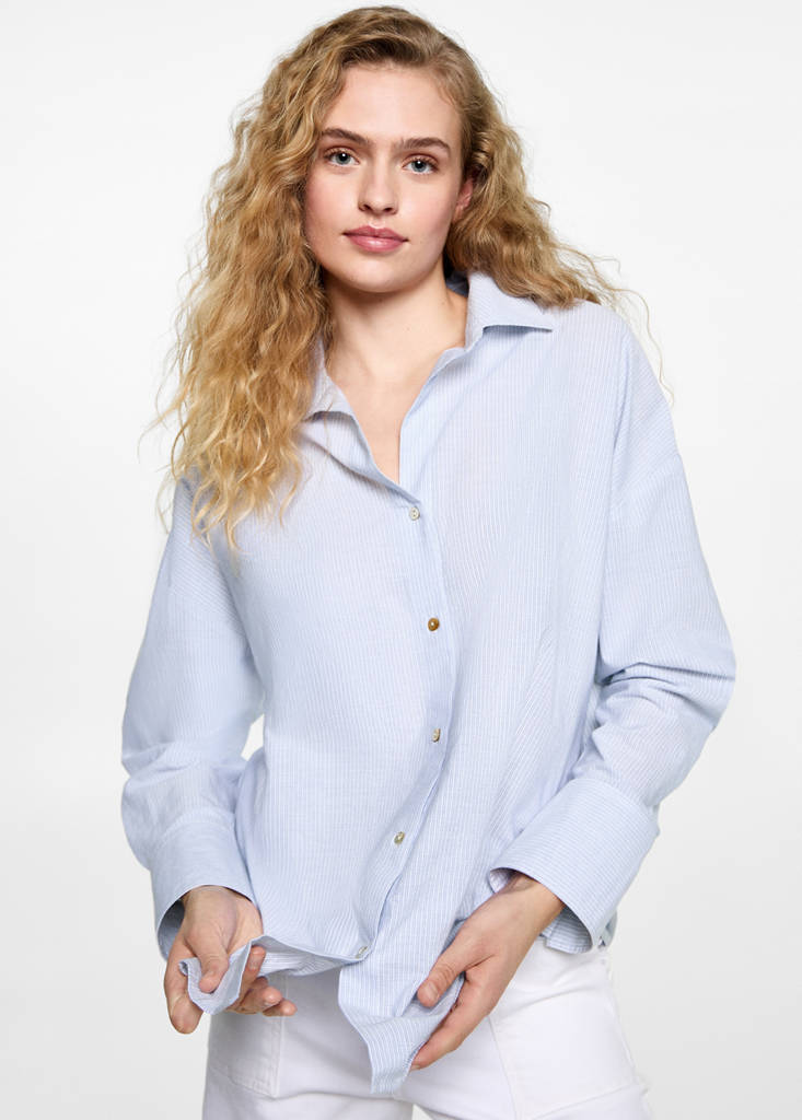 100 % coton. Tissu fluide. Coupe droite. Col chemise. Manches longues et poignets boutonnés. Fermeture avant avec boutons