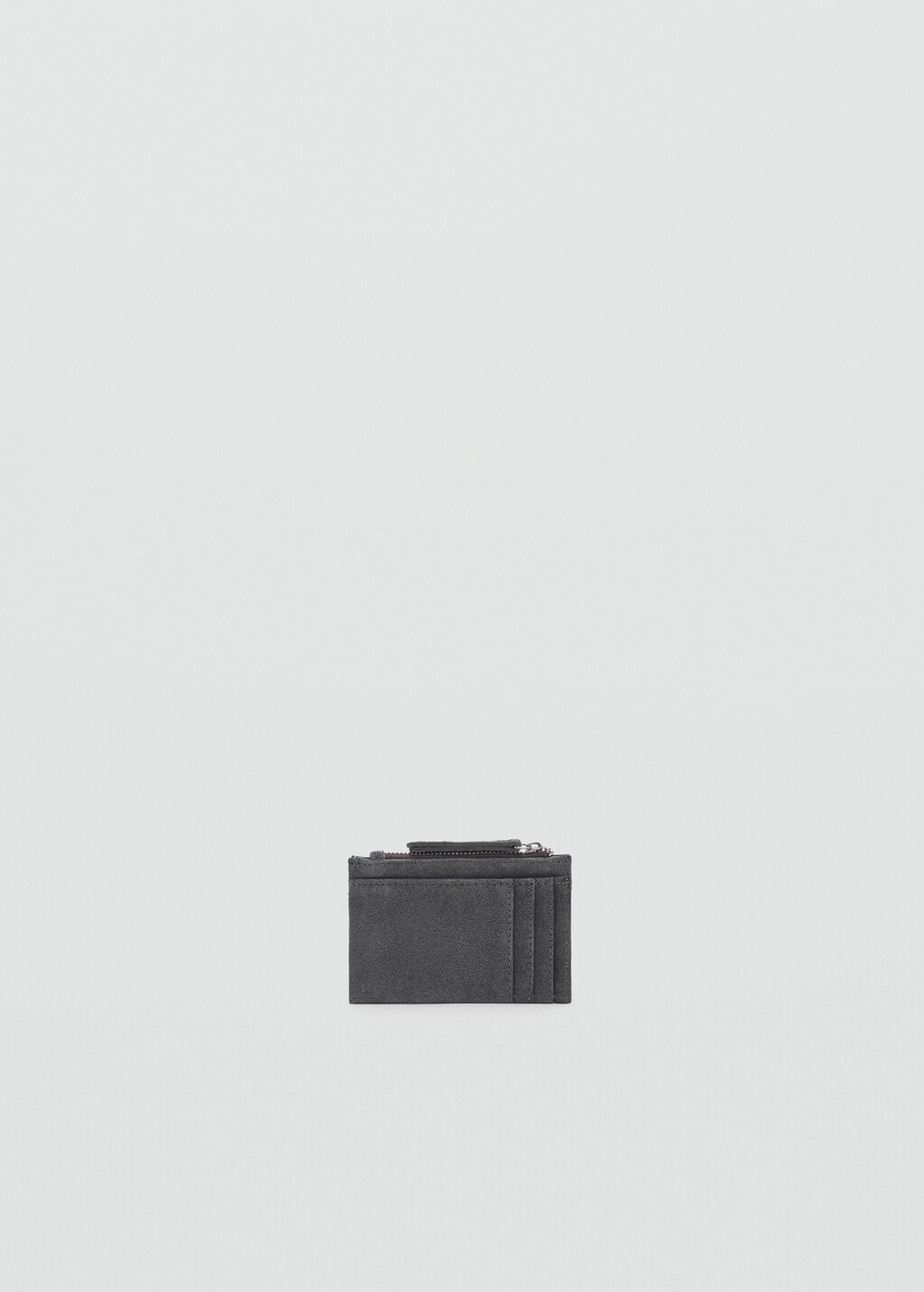 100 % cuir bovin. Design carré. Clous décoratifs. Fermeture éclair. Porte-monnaie de type porte-cartes. Poche gousset.