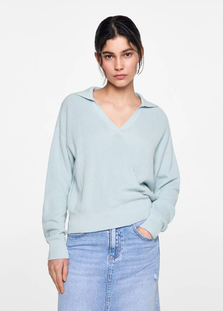 100% coton. Coupe droite. Col en V. Col polo sans boutons. Manche longue. Rentrée