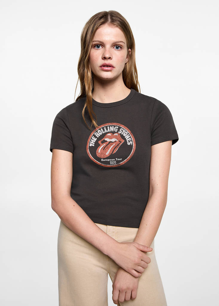 Tissu en coton mélangé. Style 7/8. Manches courtes. Col rond. Imprimé The Rolling Stones. Licences