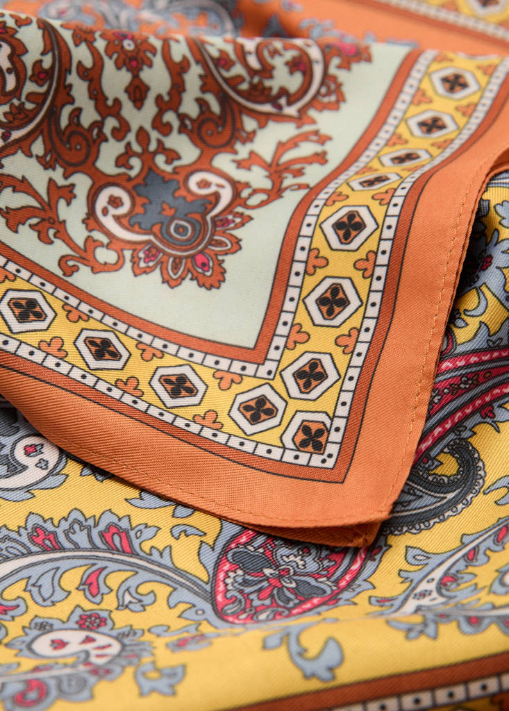 Satijnstof. Vierkant ontwerp. Print Paisley