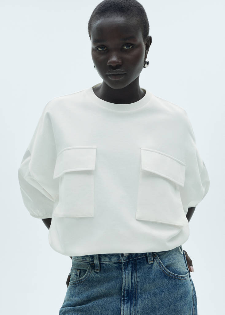 Katoenen T-shirt met zakkenPrijsgeschiedenisOorspronkelijke prijs doorgehaald [29,99 € ]29,99 €Tweede prijs doorgehaald [19,99 € ]19,99 €Huidige prijs [7,99 € ]7,99 €-73%Kies een kleurGebroken witHet model draagt maat S en is 171cm lang.Kies je maatXSNiet op voorraad, maar ik wil hem hebben!SNiet op voorraad, maar ik wil hem hebben!MNiet op voorraad, maar ik wil hem hebben!LNiet op voorraad, maar ik wil hem hebben!XLNiet op voorraad, maar ik wil hem hebben!AfmetingenInformeer me!Korte mouw. Oversize ontwerp. Ronde hals. Onderkant met aansnoerkoord. 100% gerecycled katoenDetails, samenstelling en verzorgingVoorradig in de winkel