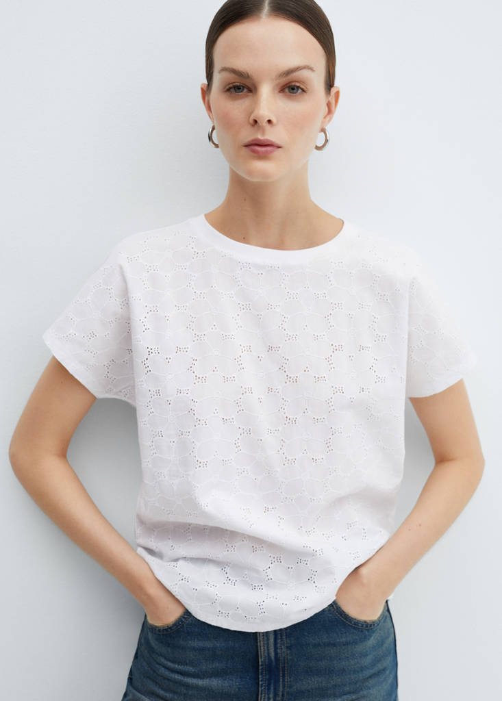 Opengewerkt T-shirt van katoenPrijsgeschiedenisOorspronkelijke prijs doorgehaald [22,99 € ]22,99 €Huidige prijs [14,99 € ]14,99 €-35%Kies een kleurWitHet model draagt maat S en is 176cm lang.Kies je maatXXSNiet op voorraad, maar ik wil hem hebben!XSNiet op voorraad, maar ik wil hem hebben!SNiet op voorraad, maar ik wil hem hebben!MNiet op voorraad, maar ik wil hem hebben!LNiet op voorraad, maar ik wil hem hebben!XLNiet op voorraad, maar ik wil hem hebben!XXLNiet op voorraad, maar ik wil hem hebben!AfmetingenInformeer me!Regular fit. Recht ontwerp. Opengewerkt dessin. Floraal ontwerp. Ronde hals. Korte mouw. Zonder sluiting. 100% katoenen stofDetails, samenstelling en verzorgingVoorradig in de winkel