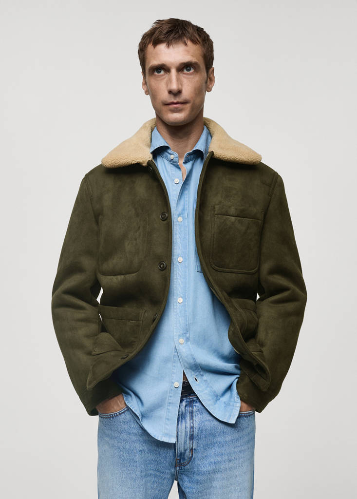 Dubbelzijdig ontwerp. Manchetten met knopen. Teddy voering. Voorste knoopsluiting. Drie opgestikte zakken aan de voorkant. Binnenzak. Rechte zoom. Revers met schapenvachteffect