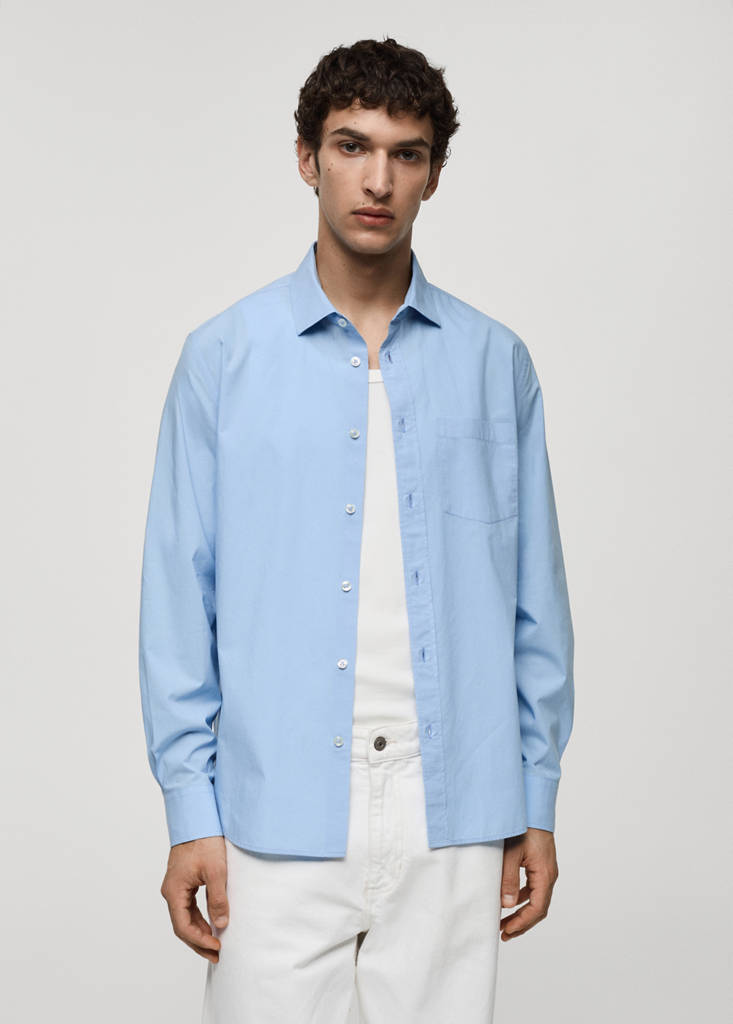 Regular fit. Overhemdkraag. Opgestikte borstzak. Lange mouwen met knoopmanchetten. Afgeronde zoom. 100% katoenen stof. Voorste knoopsluiting