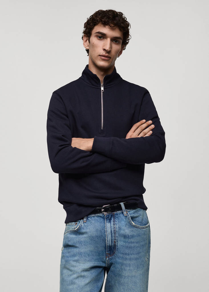 Regular fit. Katoenmix stof met geborstelde binnenkant. Trechterhals met ritssluiting. Geribde boorden en zoom. Rechte zoom. De kaneelkleur is exclusief online. Katoenen stof. De kleuren zwart en groen zijn exclusief online verkrijgbaar. Contrasterende geribde manchetten en zoom