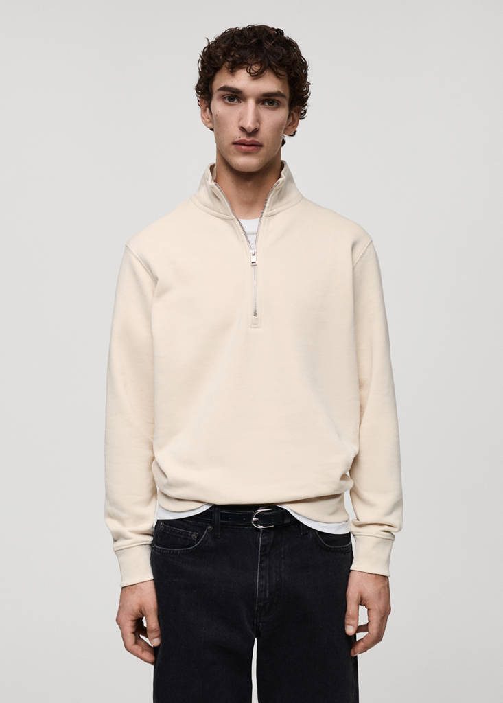 Regular fit. Katoenmix stof met geborstelde binnenkant. Trechterhals met ritssluiting. Geribde boorden en zoom. Rechte zoom. De kaneelkleur is exclusief online. Katoenen stof. De kleuren zwart en groen zijn exclusief online verkrijgbaar. Contrasterende geribde manchetten en zoom