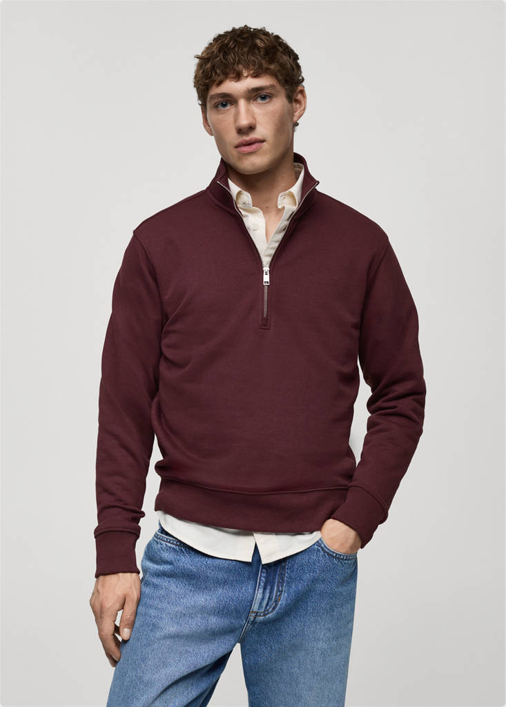 Regular fit. Katoenmix stof met geborstelde binnenkant. Trechterhals met ritssluiting. Geribde boorden en zoom. Rechte zoom. De kaneelkleur is exclusief online. Katoenen stof. De kleuren zwart en groen zijn exclusief online verkrijgbaar. Contrasterende geribde manchetten en zoom