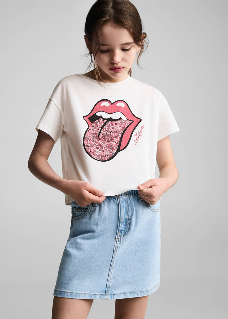 100% katoen. Recht ontwerp. The Rolling Stones-print. Ronde hals. Korte mouw