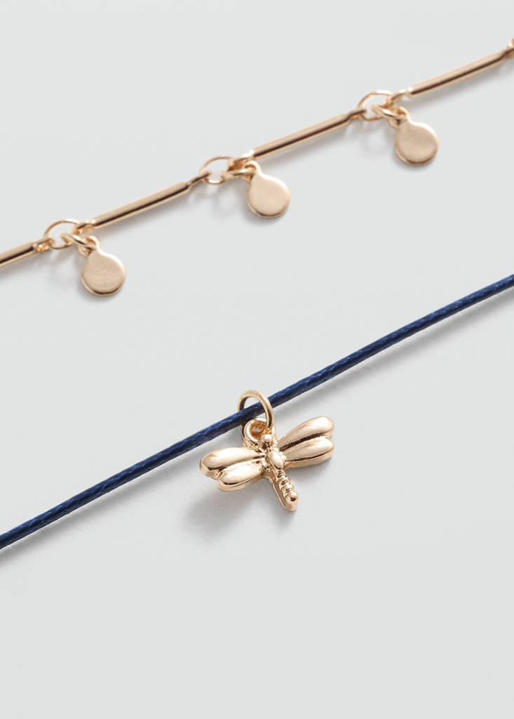Pack of 2. Choker style. Glass bead pendant. Chain design. Dragonfly detail. Zip and carabiner fastening