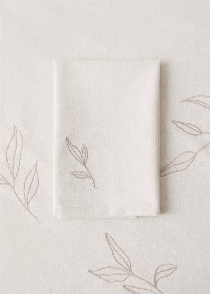 Pack of 2. Decorative leaves. Match them with the same collection tablecloth and enjoy harmony and balance around the table. Tablecloth and napkins available. Add a refined and natural style to your dining room with our tablecloth. The embroidered leaf design adds an artistic and elegant detail that will make every meal a special occasion. Perfect for those who appreciate quality and good taste in home details. Size: 45x45cm. 100% cotton fabric