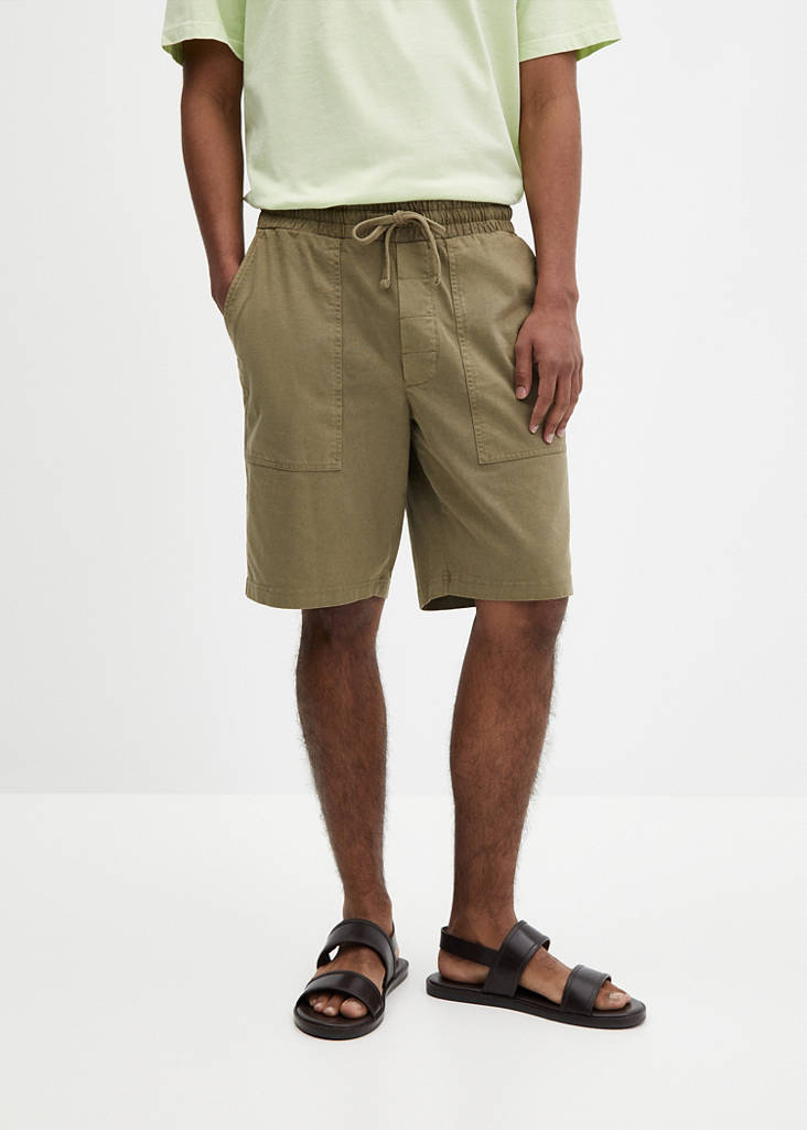 Set available as total look. Two patch pockets at the front. Elastic waist with adjustable drawstring. Back patch pocket. Backstitched details. 100% cotton fabric