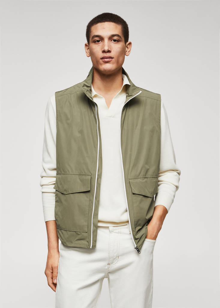Online Exclusive. Water-repellent: The durable finish of this garment protects against light rain, repelling contact with water and raindrops. Ultralight technical fabric. Removable adjustable hood. Front zip closure. Twin buttoned flap pockets at front. Sleeveless. Elastic hem. Without inner lining. Inner pocket. The model is 187 cm tall and is wearing a size M. Basics Collection