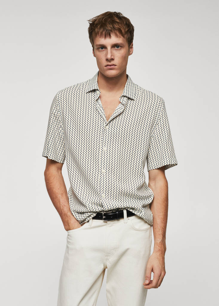 Regular fit. Fluid fabric. Short sleeves. Washing in cold water is recommended. Front closure with buttons. Classic collar. Rounded base