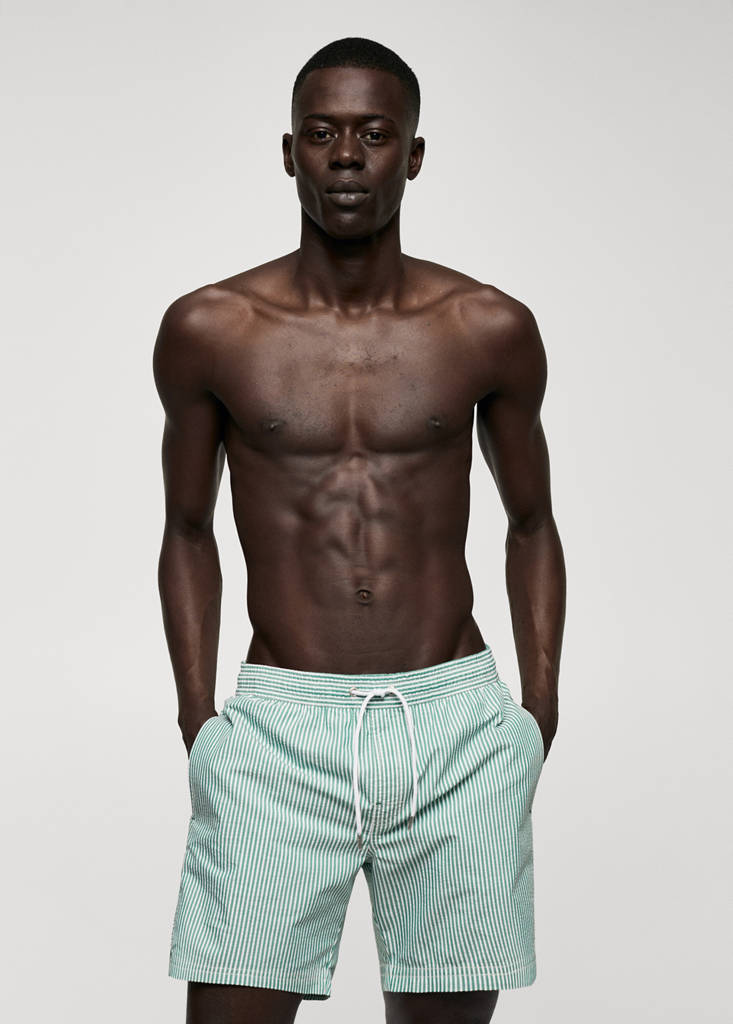 Cotton and polyester blend fabric. Medium design. Elastic waist with adjustable drawstring. Two front pockets. Back patch pocket with Velcro. Interior pocket. Inner lining