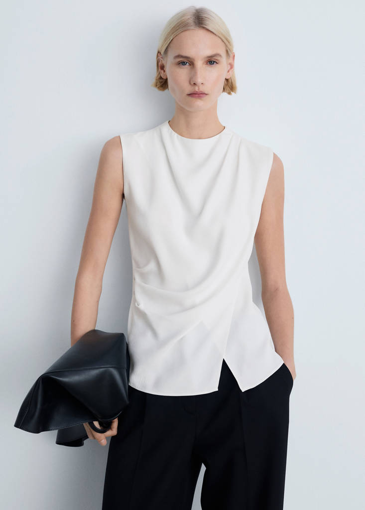 Sleeveless draped blousePrice historyInitial price struck through [30.67 € лв. 59.99]30.67 €лв. 59.99Second price struck through [20.96 € лв. 40.99]20.96 €лв. 40.99Current price [17.99 € лв. 35.19]17.99 €лв. 35.19-41%Select a colourOff WhiteThe model is wearing size S and is 179cm tall.Select your sizeXXSNot available. I want it!XSNot available. I want it!SNot available. I want it!MNot available. I want it!LNot available. I want it!XLNot available. I want it!XXLNot available. I want it!1XLNot available. I want it!2XLNot available. I want it!3XLNot available. I want it!4XLNot available. I want it!DimensionsNotify meFluid fabric. Wrap design. Fitted design. Round neck. Sleeveless. Draped details. Back zip fasteningDetails, composition and careStore availability