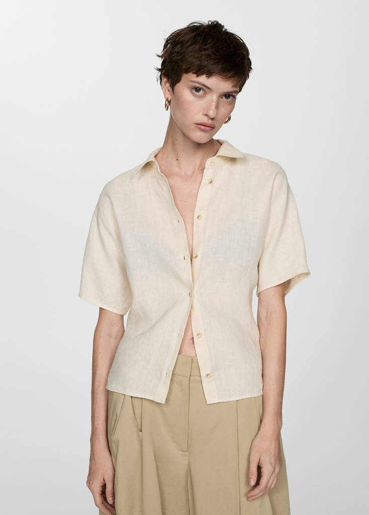 100% linen fabric. Straight design. Shirt collar. Short sleeves. Available Plus. Front closure with buttons