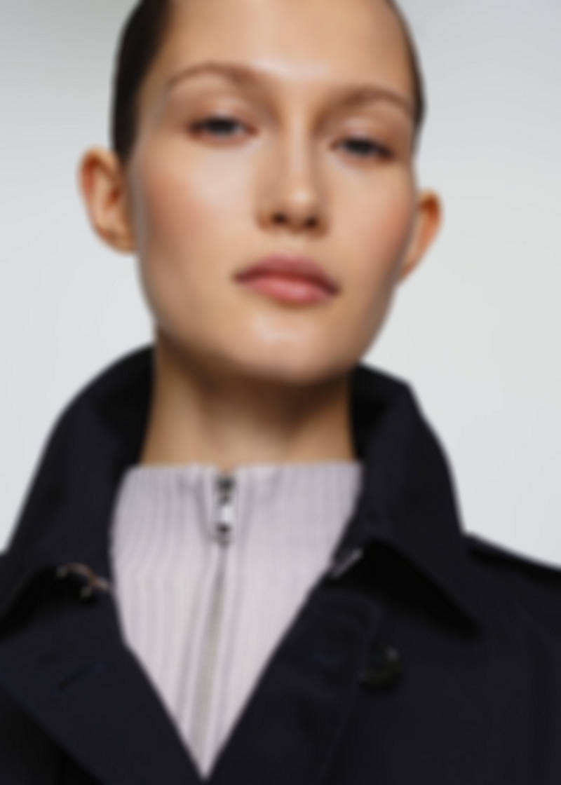 Straight design. Wrap design. Medium design. Notched lapel collar. Long sleeves. Loops on the cuffs. Two side pockets. Button fastening at the front. Adjustable belt. Back vent at the hem. Tortoiseshell effect buttons. The grey model is an online exclusive. Available Plus. Office looks. Water-repellent: The durable finish of this garment protects against light rain, repelling contact with water and raindrops. The ecru colour is an online exclusive. 100% cotton fabric
