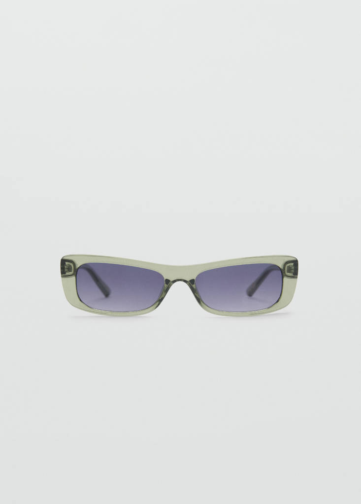 Rectangular design. Resin frame. Total UV protection factor with category 3 filter. These sunglasses are made of recycled post-industrial waste from a polycarbonate eyewear manufacturing process. The resulting material has the same properties as standard PC in overall flexibility and durability performance