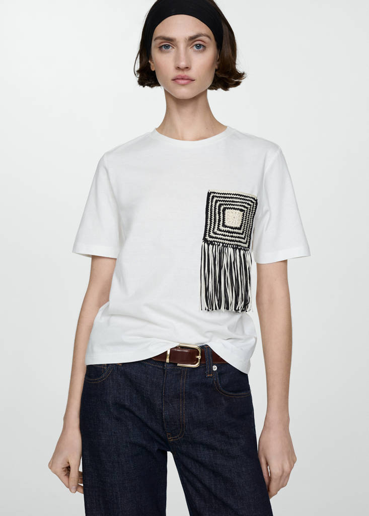 Crochet detail T-shirtPrice historyInitial price struck through [16.87 € лв. 32.99]16.87 €лв. 32.99Second price struck through [11.24 € лв. 21.98]11.24 €лв. 21.98Current price [3.99 € лв. 7.80]3.99 €лв. 7.80-76%Select a colourWhiteThe model is wearing size S and is 177cm tall.Select your sizeXXSNot available. I want it!XSNot available. I want it!SNot available. I want it!MNot available. I want it!LNot available. I want it!XLNot available. I want it!XXLNot available. I want it!MeasurementsNotify meStraight design. Round neck. Short sleeves. Crochet detail. Fringe detail. 100% cotton fabricDetails, composition and careStore availability