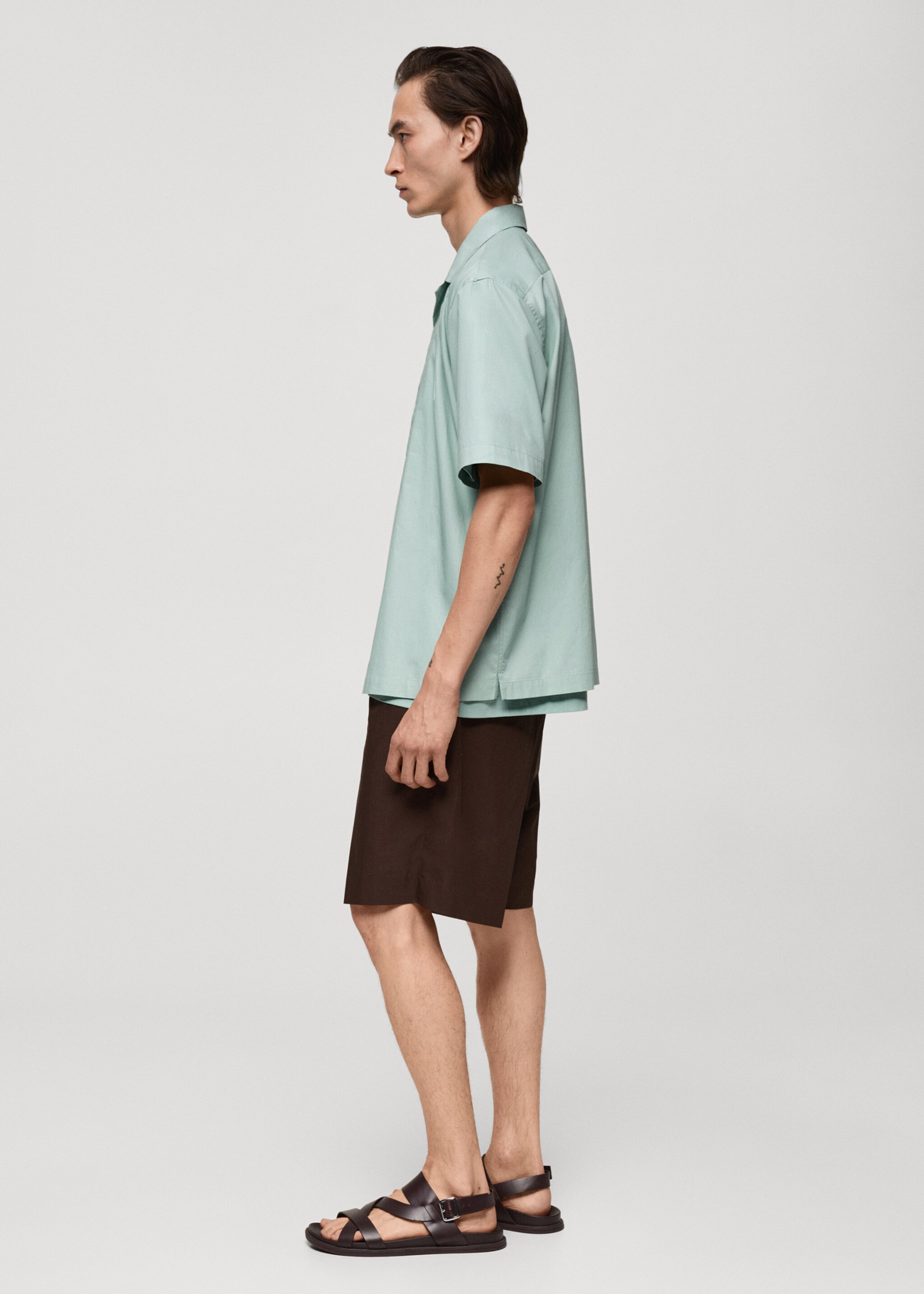 Regular Fit-Hemd aus 100 % Leinen - Mittlere Ansicht, Khaki. Ref: 77020580-00.