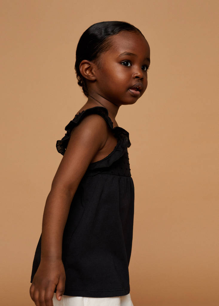 100 % Baumwollgewebe. Einsatz aus Plumetis. Rundhalsausschnitt. Breite Träger. Rüschenträger