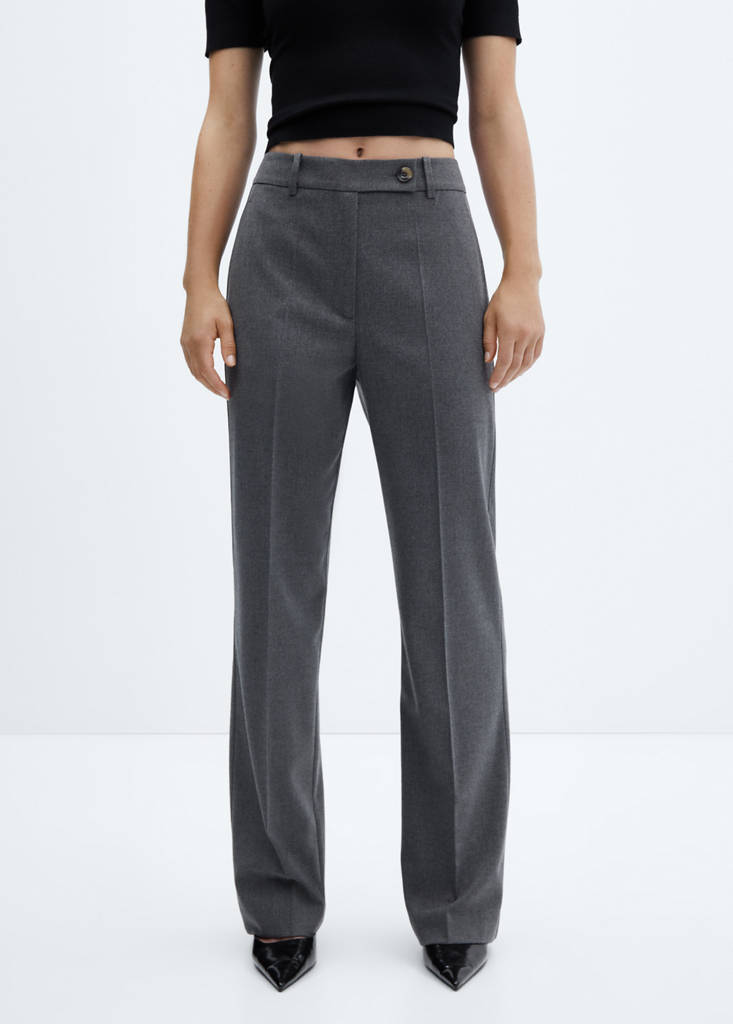 Langes Design. Gerades Design. Tiefer Sitz. Zwei seitliche Taschen. Reißverschluss und Knopfverschluss. Schlaufen für Gürtel. In Plus-Size erhältlich. Büro-Looks. Rückwärtige Einstecktasche