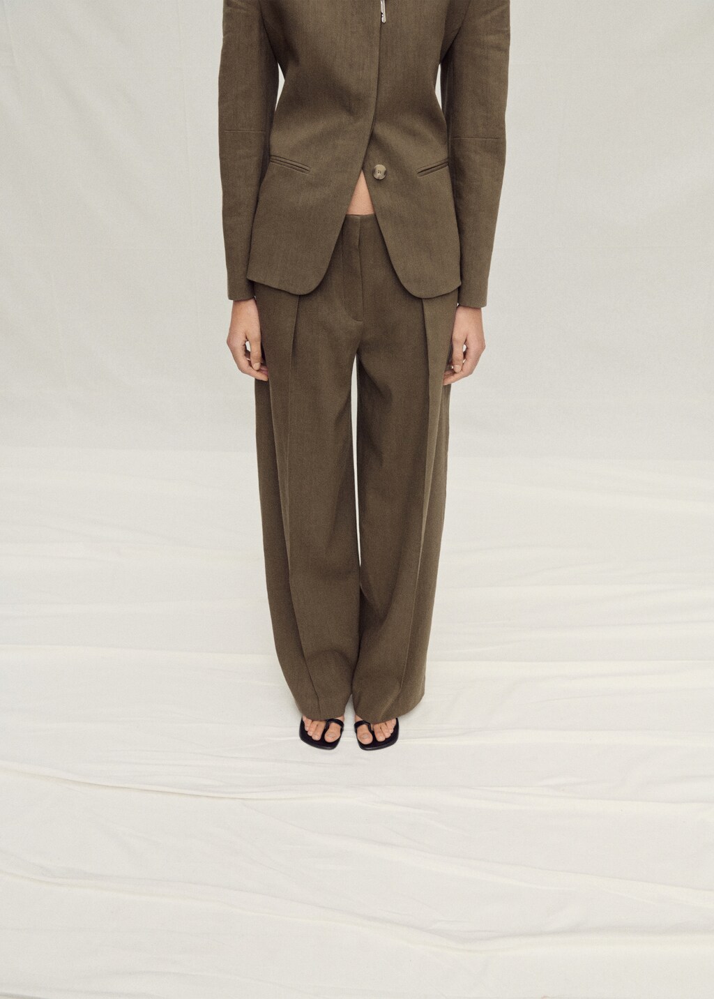 Leinen-Mix. Anzugstil. Langes Design. Gerades Design. Tiefer Sitz. Nahtloser Bund. Gürtelschlaufen. Seitentaschen. Vordere Abnäher. Verdeckter Knopf, Haken und Reißverschluss vorne mit Knopfleiste. Total Look. Selection-Kollektion