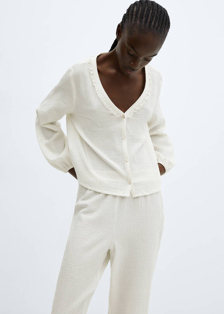 2er-Set. Baumwolle. Oversize-Design. Kurzes Design. Hemdkragen. Volant-Detail am Ausschnitt. Langer Ballonärmel. Elastische Ärmelenden. Knopfverschluss vorne