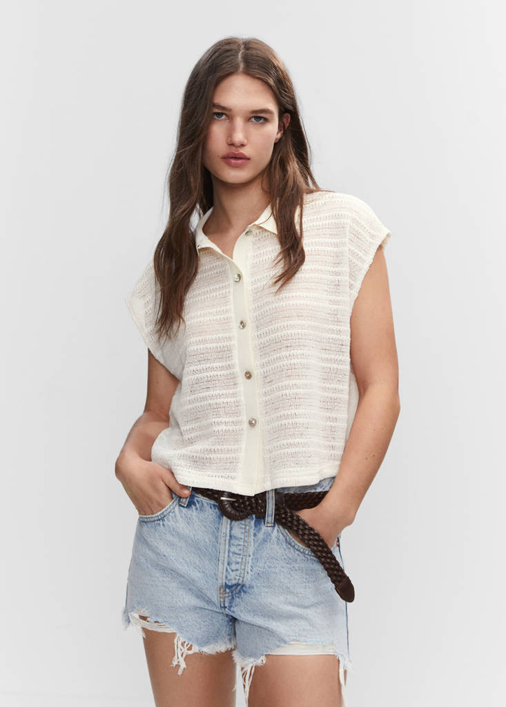Strick. Hemdstil. Gerades Design. Hemdkragen. Kurze Ärmel. Knopfverschluss vorne