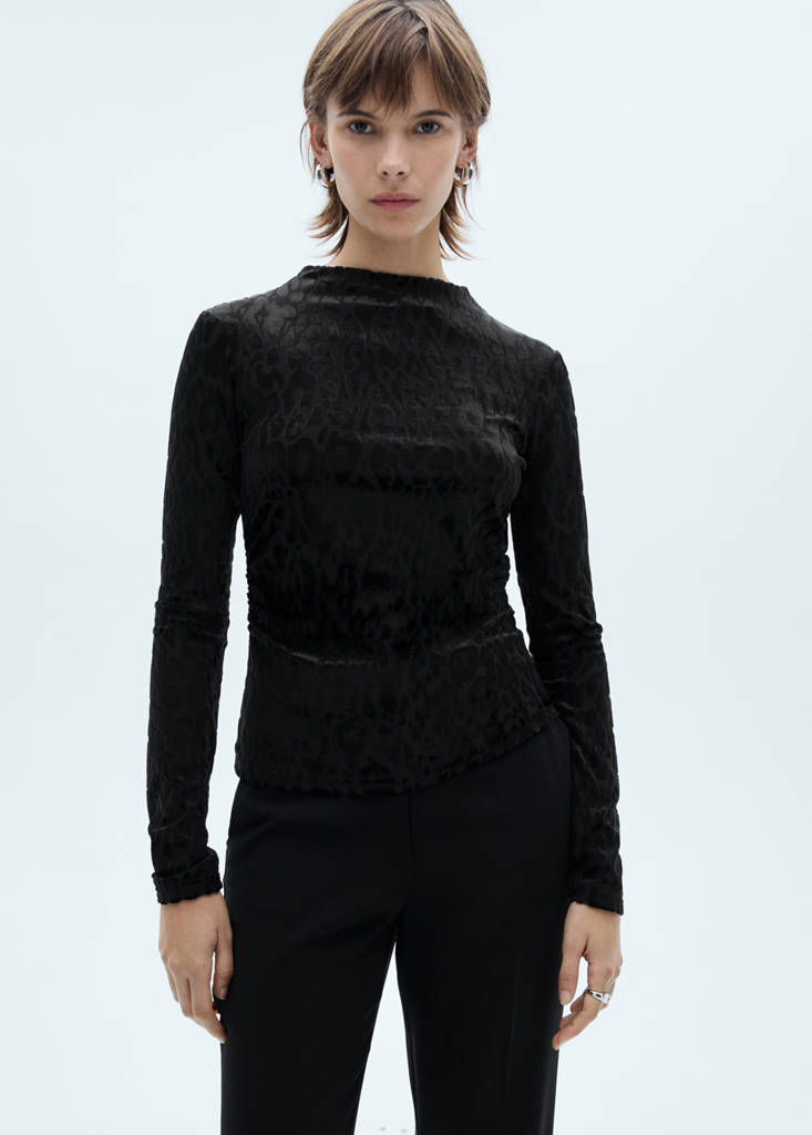 Fließender Stoff. Tailliertes Design. Leoparden-Print. Perkins-Kragen. Lange Ärmel. Ohne Verschluss. Kollektion für Partys, Feierlichkeiten und Kommunionen