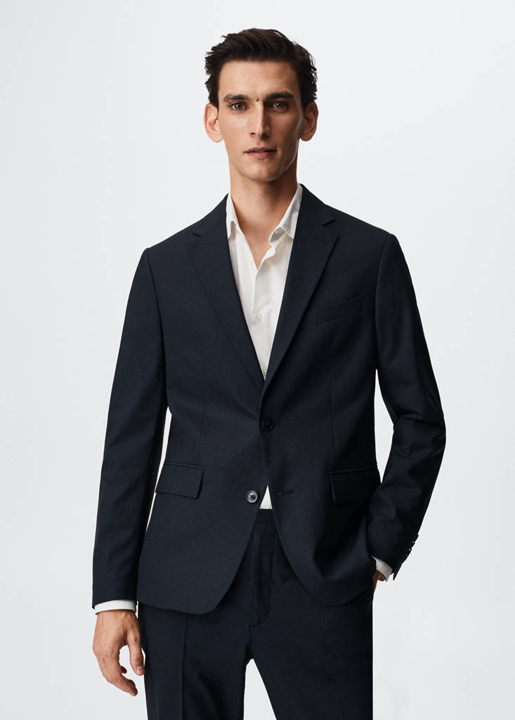 Slim Fit. Fallendes Revers. Lange Ärmel mit Knöpfen. Leistentasche auf der Brust. Zwei Pattentaschen vorne. Futter. Zwei Innentaschen. Doppelter Rückenschlitz. Knopfverschluss. Das Model ist 190 cm groß und trägt Größe 50