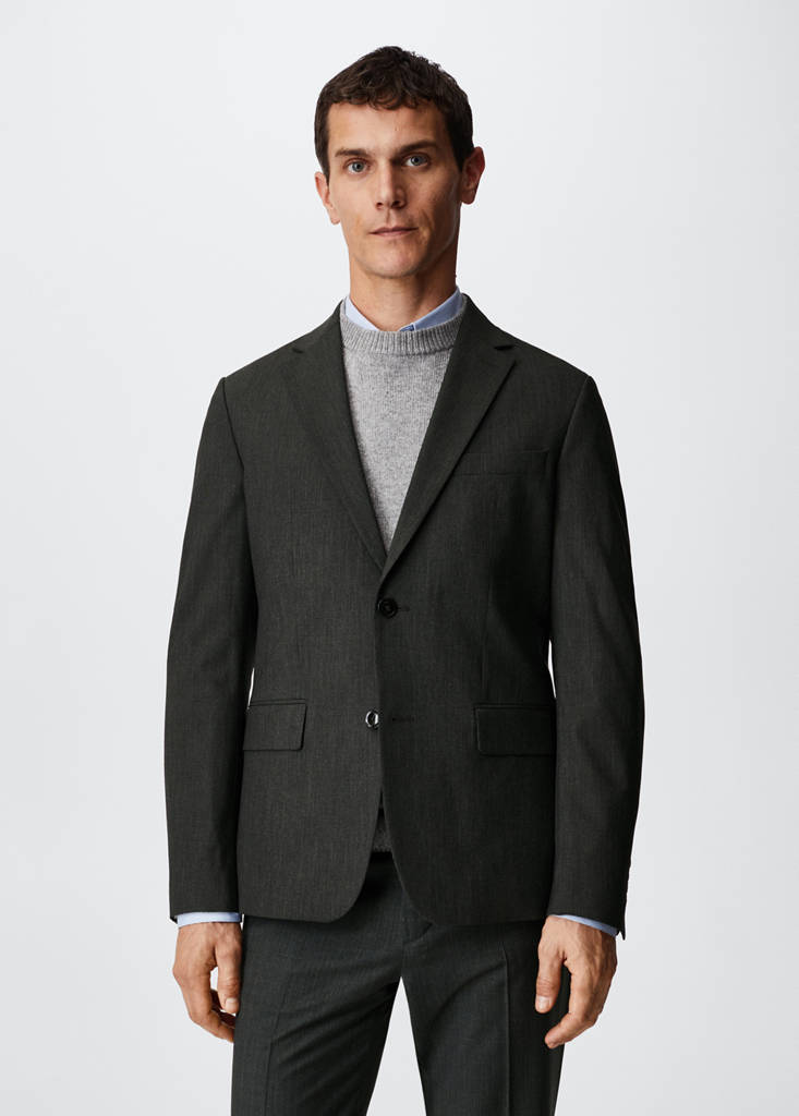 Slim Fit. Fallendes Revers. Lange Ärmel mit Knöpfen. Leistentasche auf der Brust. Zwei Pattentaschen vorne. Futter. Zwei Innentaschen. Doppelter Rückenschlitz. Knopfverschluss. Das Model ist 185 cm groß und trägt Größe 50