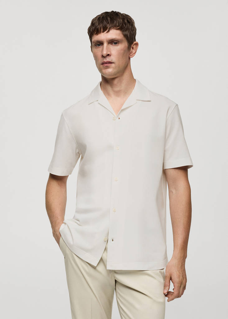 Regular Fit. Baumwollpikee. Bowlingkragen. Knopfverschluss vorne. Kurze Ärmel. Gerader Saum mit seitlichen Schlitzen