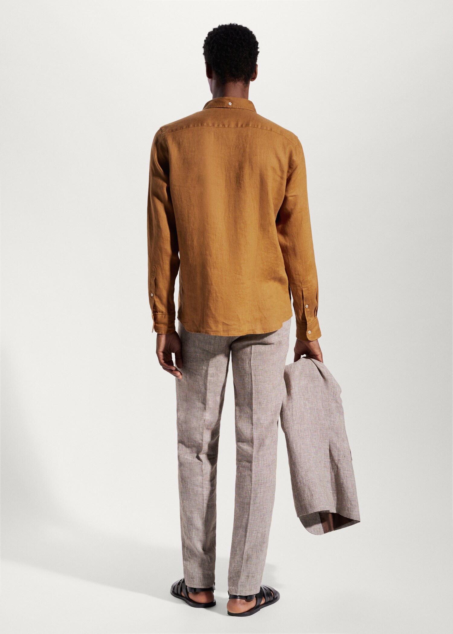 Klassischer Kragen. Slim Fit. 100 % Leinen. Knopfverschluss vorne. Leichter Stoff. Lange Ärmel. Aufgesetzte Brusttasche. Basics-Kollektion.