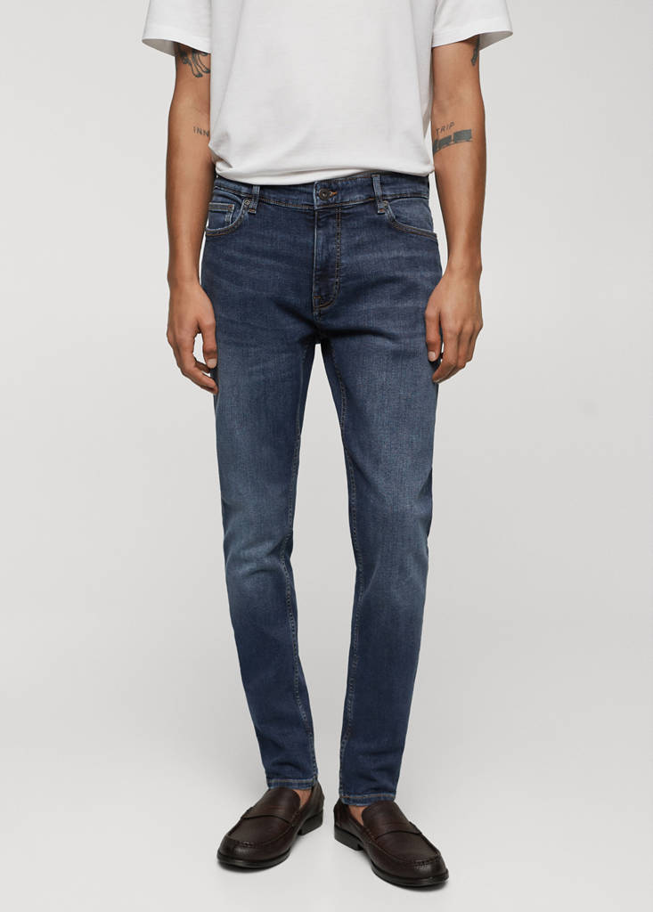 Skinny Fit: die engste Jeans-Passform. Bio-Baumwollstoff. Jeans-Stil. Dunkelblau. Mittlere Bundhöhe. Schlaufen für Gürtel. Reißverschluss und Knopfverschluss. Zwei seitliche Taschen. Münztasche. Zwei aufgesetzte Taschen auf der Rückseite. Basics-Kollektion. Skinny Fit. Crop-Design. Stretch-Baumwollgewebe. Gürtelschlaufen. Fünf Taschen