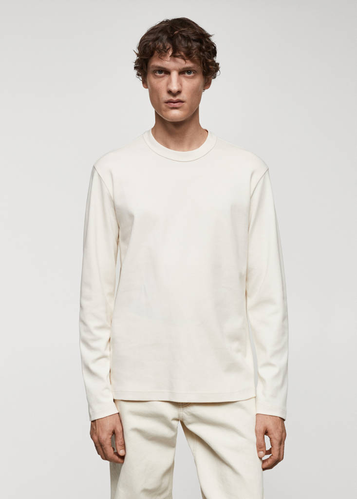 100 % Baumwolle. Regular Fit. Leichter Stoff. Rundhalsausschnitt mit Rippabschluss. Lange Ärmel. Gerader Saum mit seitlichen Schlitzen