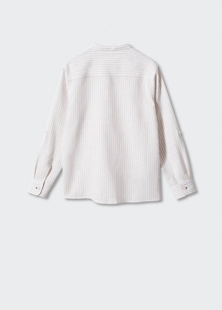 Leinen-Baumwoll-Mix. Gerades Design. Streifen-Design. Mandarinkragen. Lange Ärmel. Knopfverschluss. Ärmel mit Knopfverschlüssen
