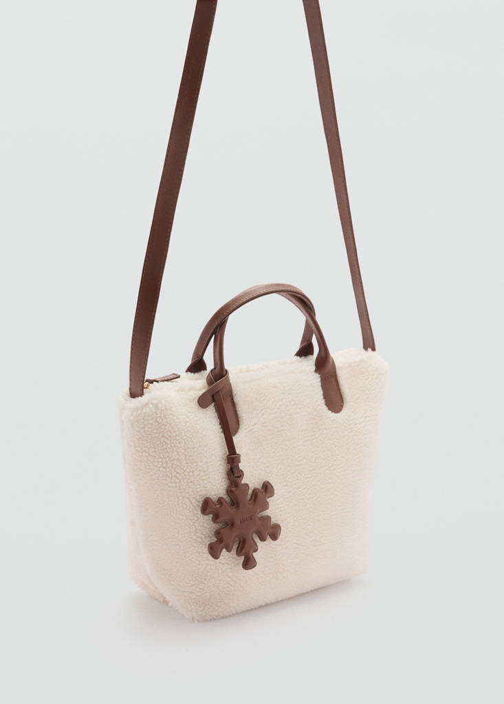 Gewebe in Shearlingoptik. Langer Griff. Doppelter Tragegriff. Reißverschluss. Weihnachtskollektion
