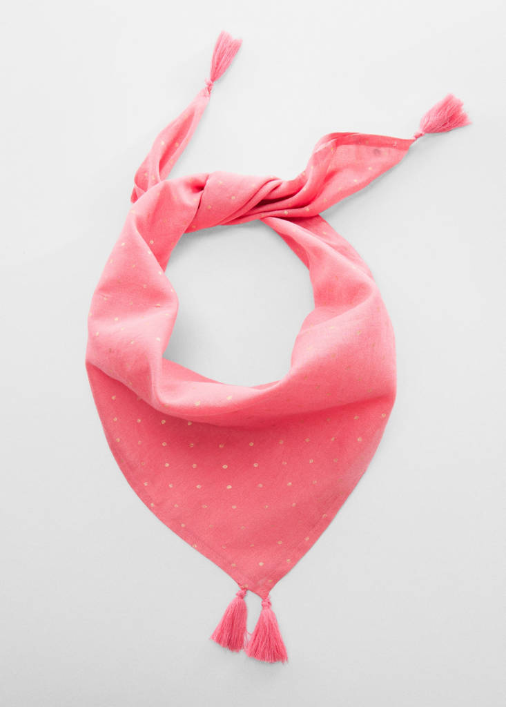 100 % Baumwolle. Tupfen-Muster. Quadratisches Design. Abschluss mit Fransen