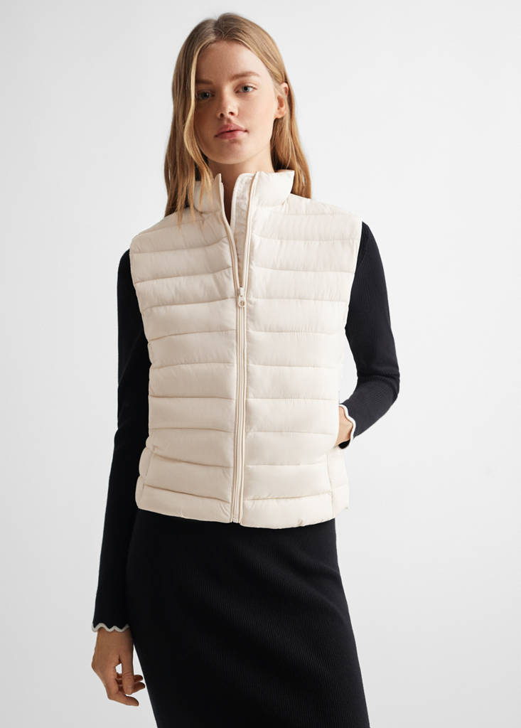 Gestepptes Design. Mit Füllung. Rollkragen. Reißverschluss. Zwei seitliche Taschen. Futter