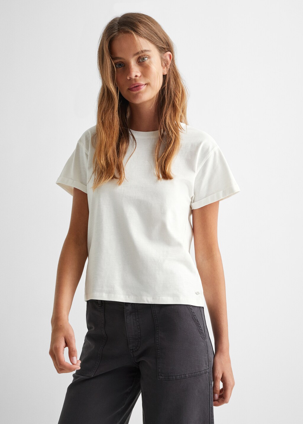 100% Baumwolle. Basic-Design. Gerades Design. Rundhalsausschnitt. Kurzer Ärmel. Das Model ist 172 cm groß und trägt die Größe M.