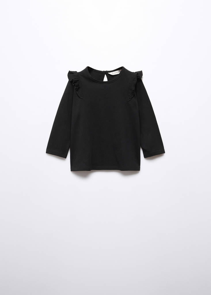 Collection Essentiels. 100 % coton. Coupe droite. Col rond. Manche longue. Détail de volants. Ce vêtement est également disponible dans la collection Kids Girl