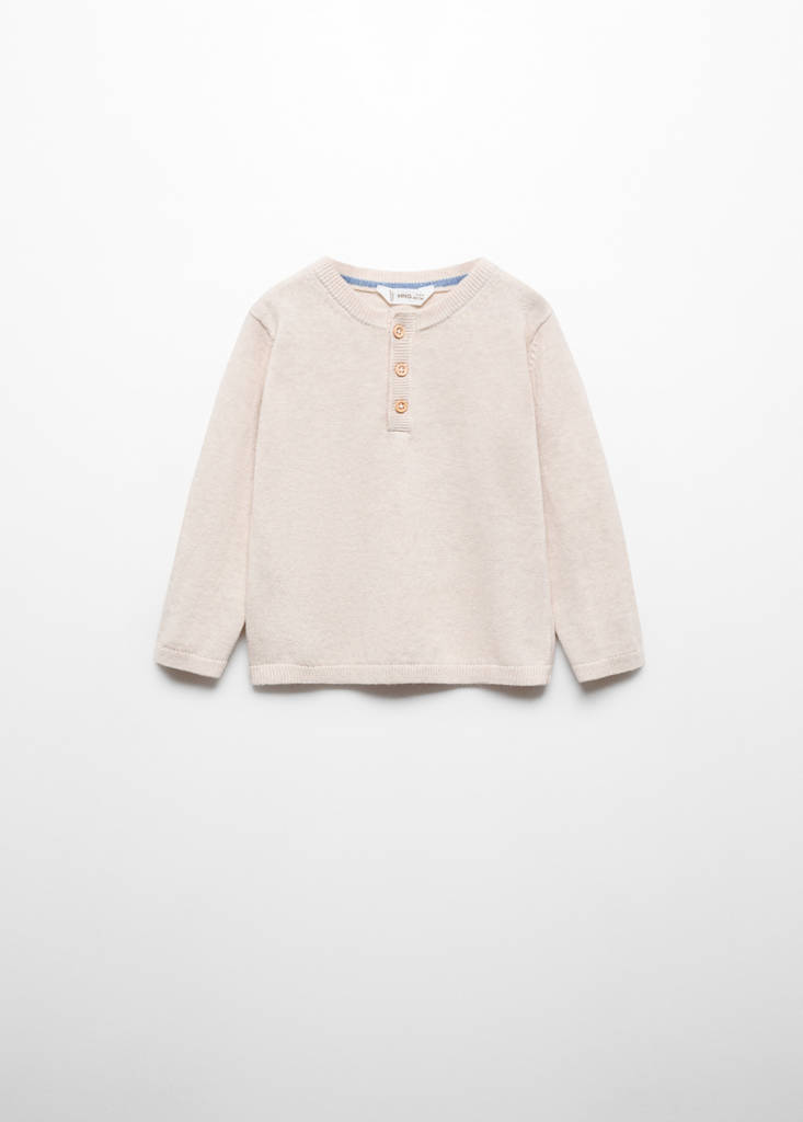 100% coton. Tissu en maille fine. Coupe droite. Col rond. Manche longue. Coupe standard. Fermeture à boutons