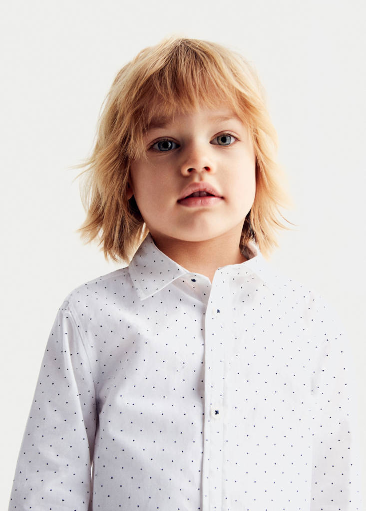 Collection fêtes, cérémonie et communion. 100% coton. Coupe droite. Coupe regular. Imprimée. Poignets boutonnés. Col chemise. Fermeture à boutons