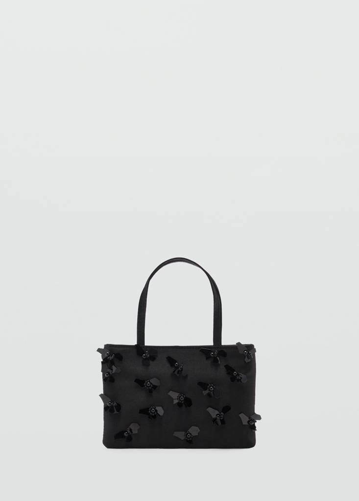 Petite taille. Double anse. Anse à main. Ornements floraux. Fermeture magnétique. Poche intérieure. Doublure intérieure