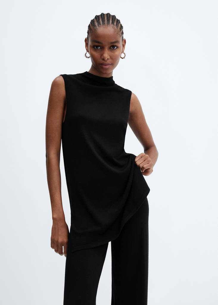 Top maille ouverture latéralePrix initial barré [CHF 35,95 ]CHF 35,95Prix actuel [CHF 24,95 ]CHF 24,95-31%Choisissez une couleurNoirLe mannequin porte la taille S et mesure 176cm.Choisissez votre tailleXSNon disponible. Je le veux !SNon disponible. Je le veux !MNon disponible. Je le veux !LNon disponible. Je le veux !XLNon disponible. Je le veux !Alertez-moi. Tissu en maille fine. Design long. Coupe droite. Col Perkins. Sans manches. Sans fermeture. Fente latérale. Total lookDétails, composition et entretienDisponibilité en boutique