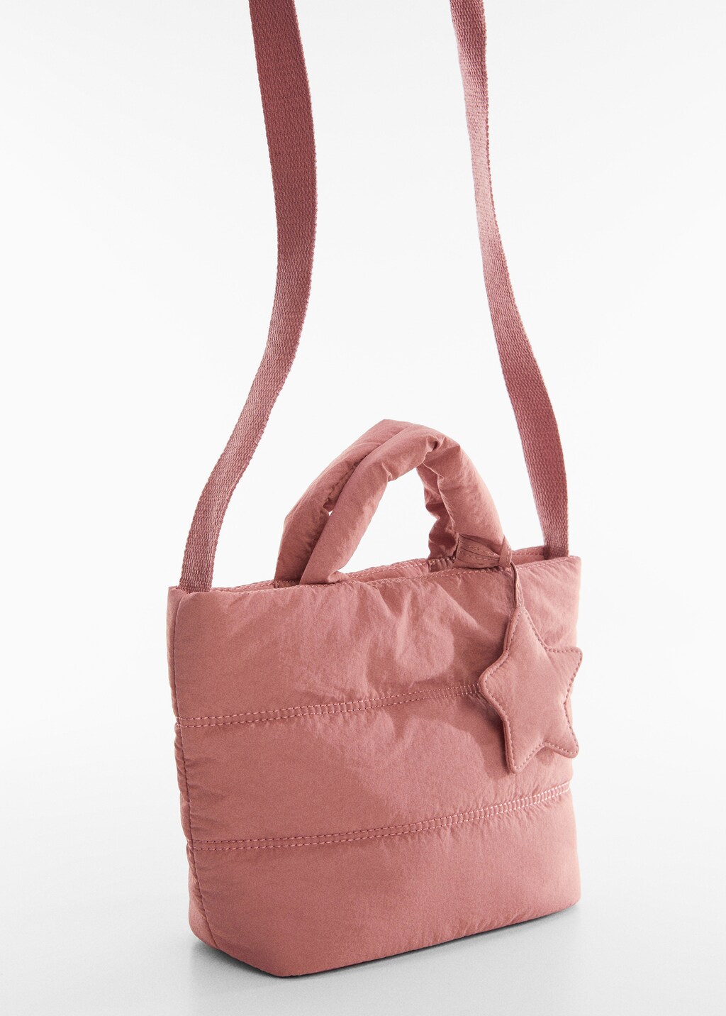 Design matelassé. Détail d’étoile. Deux anses courtes. Bandoulière. Poche intérieure zippée. Fermeture à boutons magnétiques.