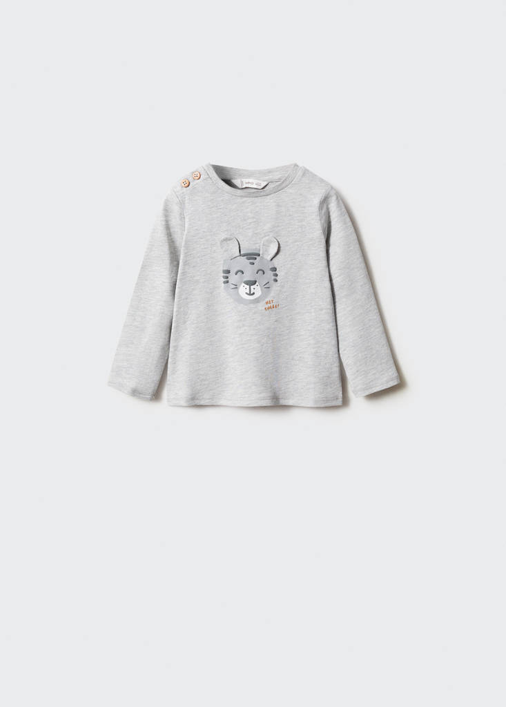 Tissu en coton. Coupe droite. Motif animal. Manche longue. Col rond. Fermeture à boutons sur les épaules