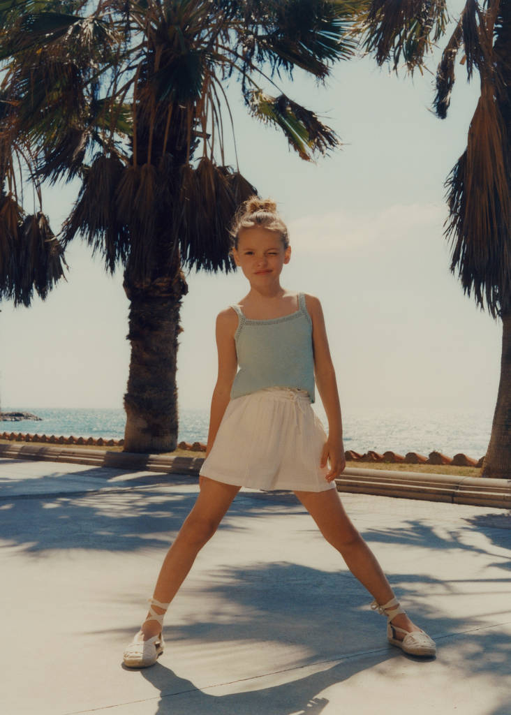 Tissu de coton et viscose mélangés. Tissu en crochet. Style crop. Col rond. Bretelles larges. Sans manches. Sans fermeture